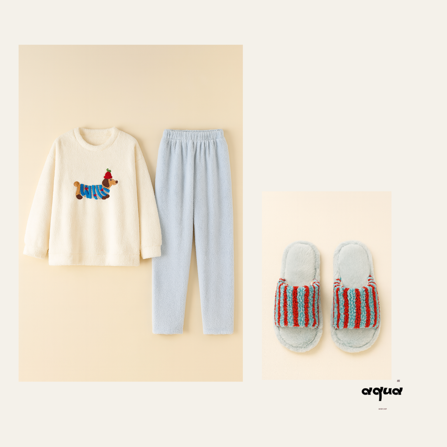 This dachshund pattern pajama set is made of soft plush material, which is light and comfortable, suitable for home relaxation. The set comes with slippers in the same color family. The combination of purple and pink exudes a girlish charm and harmonious echo, adding a warm and sweet atmosphere. Whether it's relaxation time or sleep, it can bring a considerate experience.